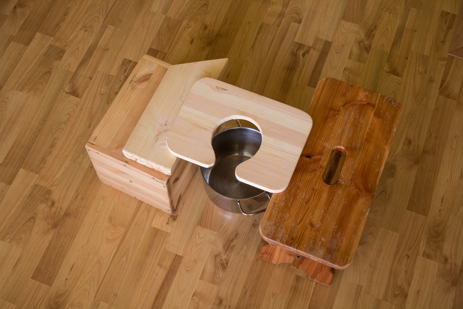 - Prkýnko nebo napařovací židličku. Vynalézavosti se však meze nekladou a proto lze vyřezat díru do plastové zahradní židličky, použít ratanovou židli nebo si dřepnout. Já doporučuji vyrobit alespoň prkýnko, které položíte na dvě malé židličky bez opěradla. (Viz. foto úplně dole) Židlička je samozřejmě nejdůstojnější, pokud vaginální napářku považujete zároveň za rituál, kterým vzdáváte hold své ženskosti.